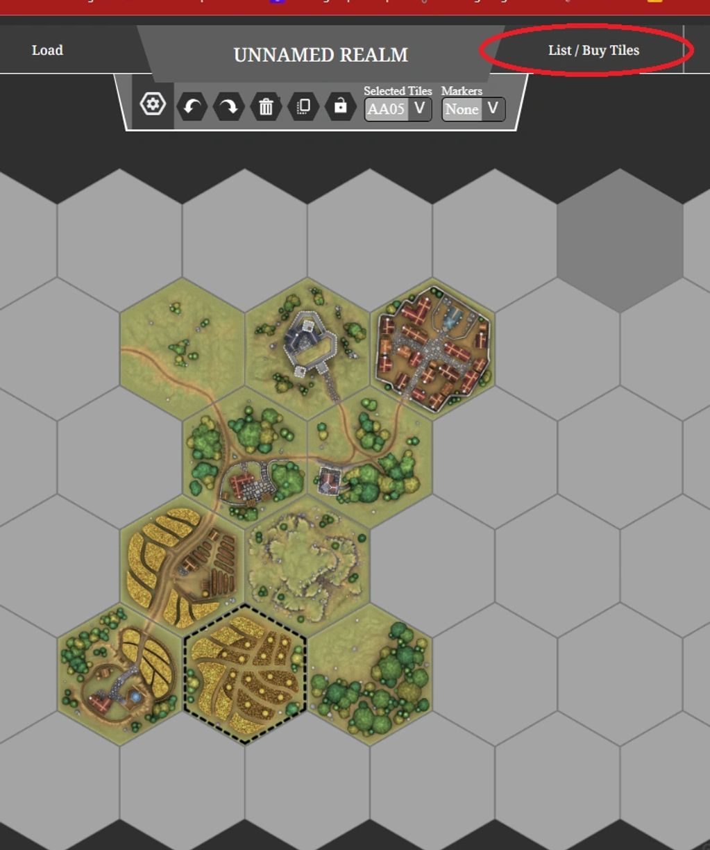 When you are all finsihed with your Map click the "List / Buy Tiles button located on the Top of the page a little to the right of centre.