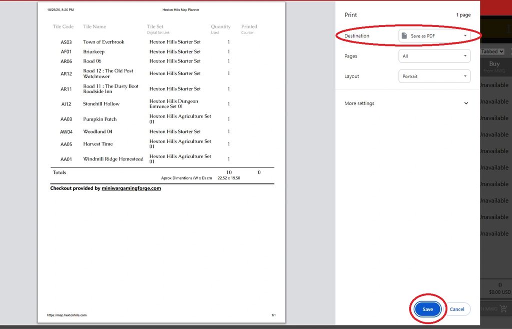 When you click that "Print" button you will get another window that looks similar to this one. First of call please make sure that the "Destination" section is set to "Save as PDF" this will make sure that it is saved as a simple PDF for both your own records and for you to send to us. After ensuring it is the correct destination please click the "Save" button on the bottom right of the window.